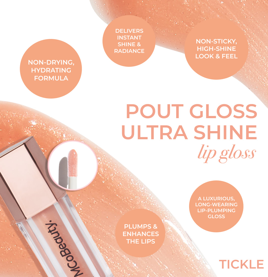 The MCoBeauty POUT GLOSS ULTRA SHINE LIP GLOSS is a luxurious, long-wearing lip-plumping gloss that delivers a sheer tint of color and light-reflecting radiance to plump and volumize the lips.